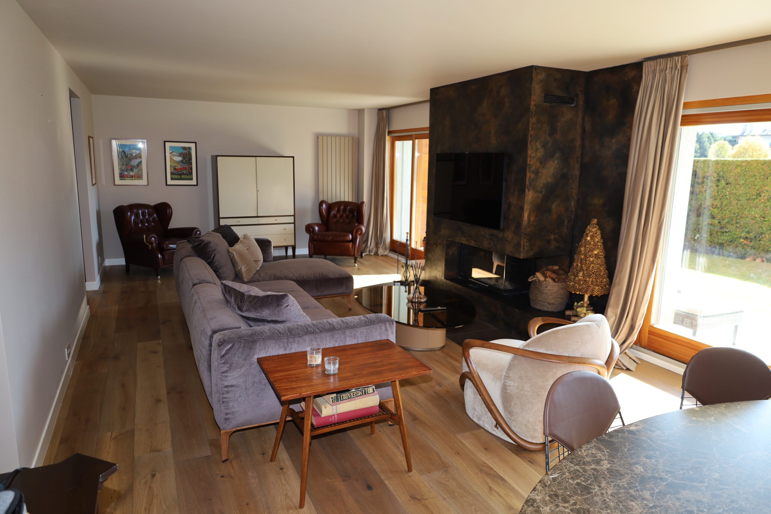 Position Top, le bien est situé en bordure du fameux Golf JNK à côté du lac l’Étang Long, dans une belle résidence, au calme. Ce bel appartement de 5.5 pièces REFAIT A NEUF au rez de jardin offre une surface d’environ 166 m2 + 49.30 m2 de balcon + 20 m2 de jardin (surface pondérée 200.65 m2). L’appartement est entièrement rénové en 2024, avec des matériaux de hautes de gamme, armoires sur mesure et mobilier luxueux (Giorgetti, Poltrona Frau, etc.) Vous apprécierez : Deux entrées, 1 hall avec vestiaire, son Wc invités, son beau séjour avec cheminée donnant sur le jardin privé, un coin à manger, sa cuisine séparée bien équipée avec balcon, une buanderie équipée, 1ere chambre à coucher avec balcon donnant sur le Golf avec salle de bain complète, 2è chambre à coucher, 3è chambre à coucher, une salle de douche complète, 4è chambre est une suite parentale avec un accès au balcon et sa salle de bain et douche complète.